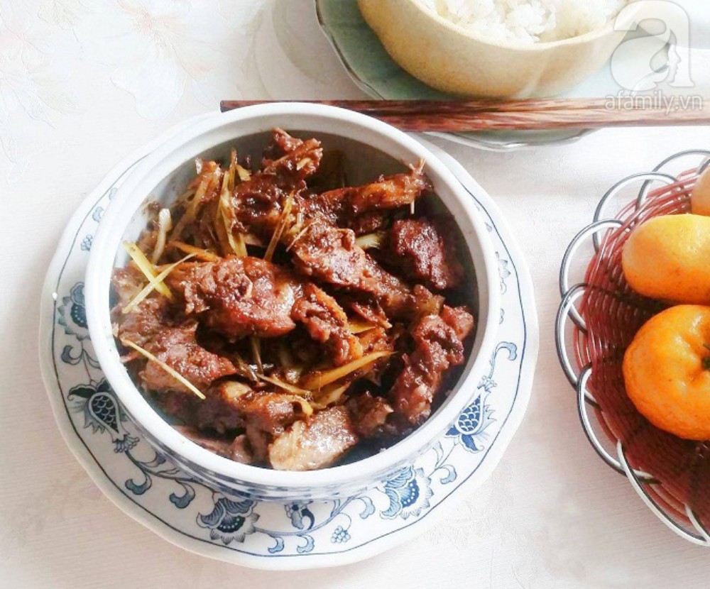 Nước cạn, thịt ngan săn lại, mùi sả, gừng thơm phức bếp là thịt đã được rồi. Tắt bếp, cho thịt vào bát, sử dụng với cơm nóng ngon cự kỳ.